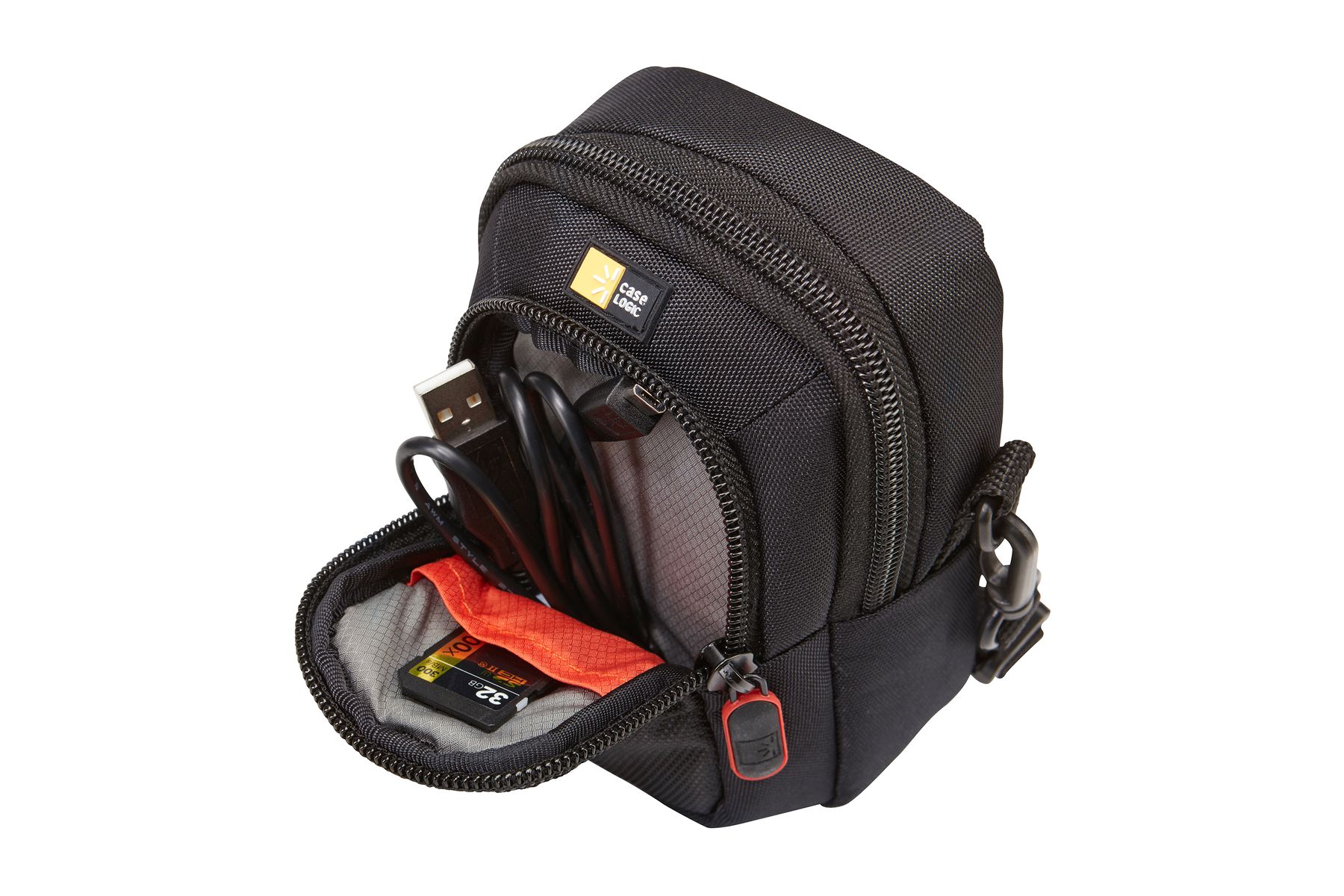 Zakje, voorzien van rits,biedt ruimte aan geheugenkaarten en andere kleine accessoires